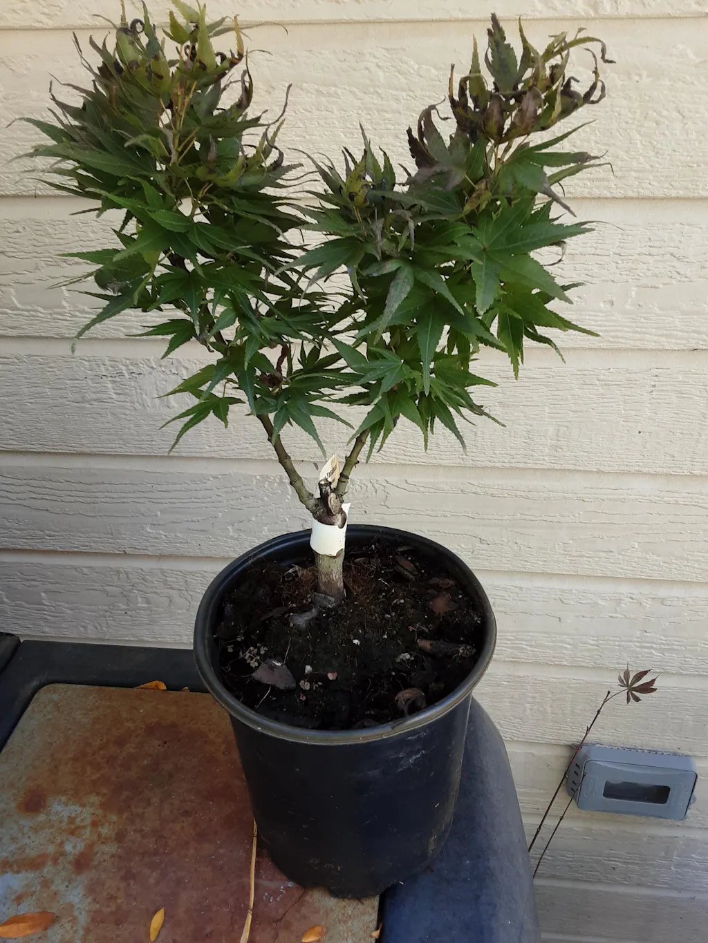 All of our Japanese Maples are grafted with a side veneer graft unless specifically stated as seedlings. This style of grafting is most commonly used in the nursery industry and allows these trees to still become excellent bonsai as the graft scar will be no longer visible when the trees age.
