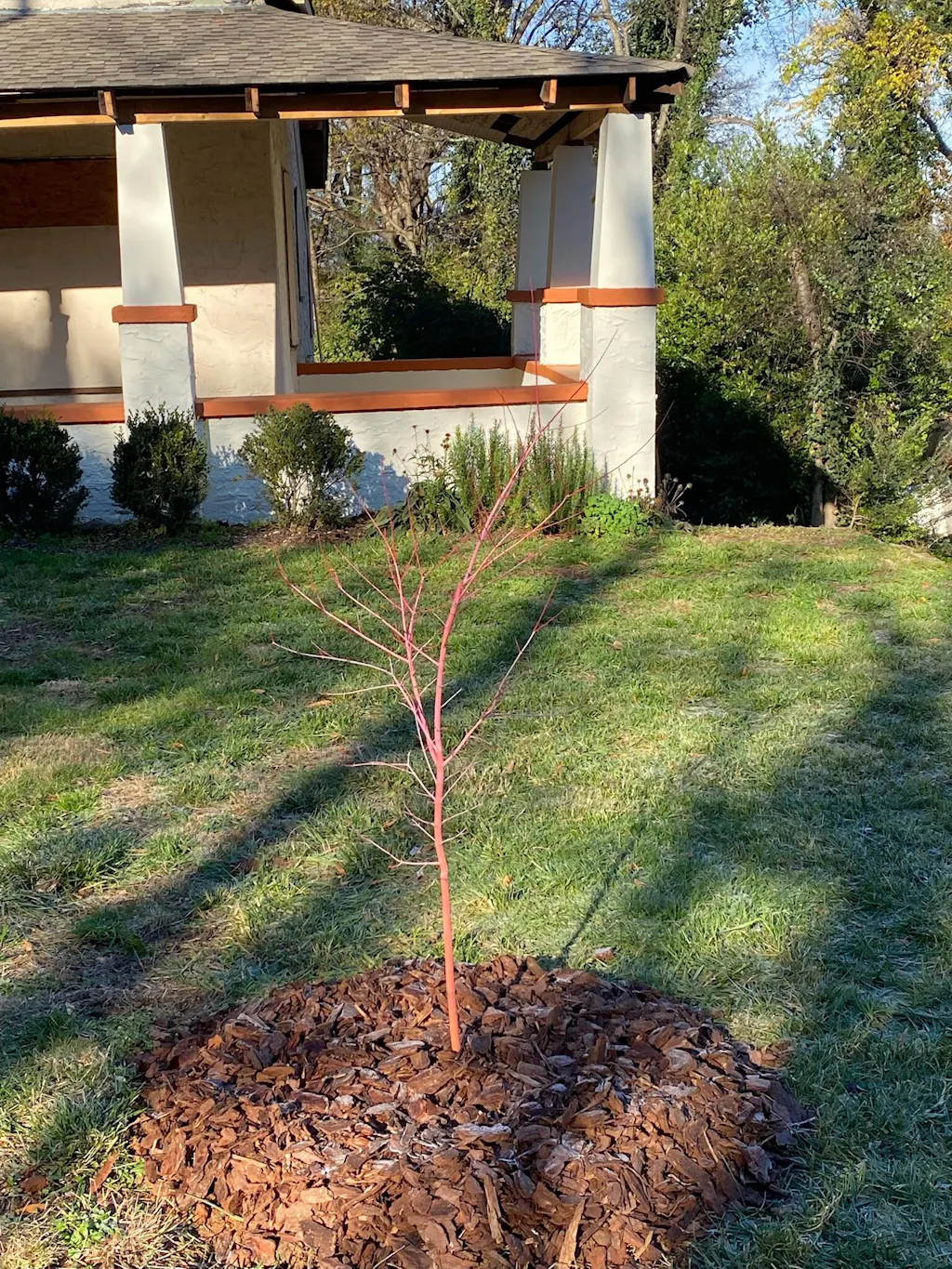 So, I looked for this particular variety for its more orangish bark color during winter, golden foliage in the fall and luscious green leaves in the spring and summer. Also wanted a tree that will grow a little taller and thrive in full sun. It is a year-round show-stopper and does not disappoint! The specimen I got was in great condition and I have had amazing growth during the first year! During the first summer I used special Japanese Maple fertilizer and provided occasional watering during hot/dry spells as instructed. The pictures speak for themselves. First one is newly planted, second is one year later.